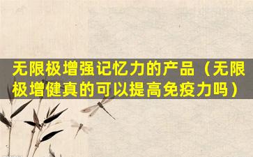 无限极(Infinitus)是一家中国的健康产品公司,隶属于李锦记健康产品集团。该公司生产和销售多种健康食品、个人护理产品以及家居护理产品。关于“无限极增强记忆力的产品”,无限极确实推出了一些声称能够改善记忆和脑健康的补充品。