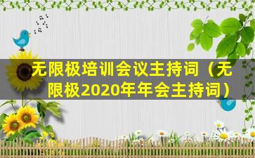 无限极是一家中国的直销公司,专注于健康产品。如果您需要为无限极的培训会议撰写主持词,以下是一个基本的模板,您可以根据实际情况进行调整和个性化: