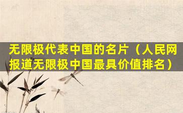 无限极是一家中国的健康产品公司,它在中国有着广泛的影响力和知名度。将其称为“代表中国的名片”可能并不准确,因为中国有许多其他在国际上具有重要影响力的企业和品牌,它们在各自的领域内代表着中国的形象和实力。中国的发展和国际形象是由多方面因素共同塑造的,包括政治、经济、文化等多个层面。因此,将某一家企业作为“代表中国的名片”可能过于简化了中国在国际上的多维形象。