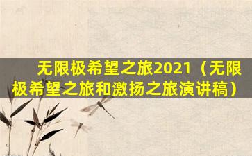 无限极希望之旅是一个由无限极公司组织的公益活动,旨在帮助贫困地区的儿童和家庭,提供教育、健康和生活支持。2021年的活动可能包括捐赠物资、建设学校、提供医疗援助等。具体的活动内容和成果需要查阅无限极公司的官方公告或新闻报道以获取详细信息。
