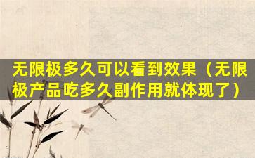 关于“无限极产品吃多久副作用就体现了”的问题,这并没有一个统一的答案。副作用的出现时间因人而异,可能在使用后立即出现,也可能在使用一段时间后才出现。如果出现副作用,应立即停止使用并咨询医生。