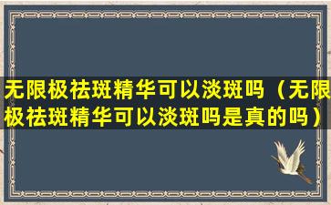 无限极是中国的一个保健品和化妆品品牌,其产品线包括了多种护肤品,其中可能包括了祛斑精华。关于“无限极祛斑精华是否可以淡斑”,这取决于产品的成分、使用者的肤质以及斑点的类型。