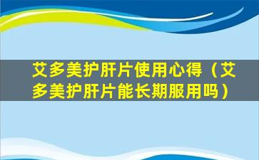 关于“艾多美护肝片”是否能长期服用,首先需要明确的是,任何药物或保健品在长期服用前都应咨询医生或专业医疗人员的意见。长期服用任何药物都可能存在潜在的风险,包括但不限于药物依赖性、副作用累积、药物相互作用等。