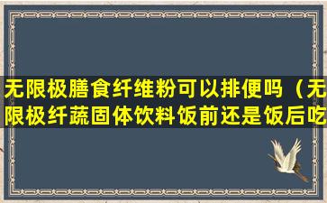 无限极纤蔬固体饮料是一种含有膳食纤维的补充品,通常用于帮助调节肠道功能和促进消化。关于饭前还是饭后吃,这取决于产品的具体说明和个人的饮食习惯。