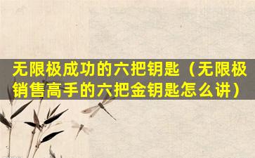 请注意,这些信息是基于一般直销公司的成功要素,并不特指无限极。如果您需要无限极具体的“六把钥匙”内容,建议直接咨询无限极公司或查阅其官方资料。同时,由于我无法访问最新的数据和信息,以上内容可能不是最新的,建议以无限极官方发布的信息为准。
