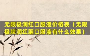 无限极(Infinitus)是一家中国的保健品公司,其产品线包括多种口服液、胶囊、粉剂等。润红口服液是无限极的一款产品,主要针对女性健康,尤其是补血养颜方面。