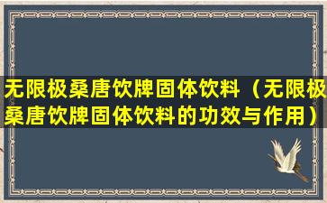 无限极桑唐饮牌固体饮料是一种由无限极公司生产的健康饮品。无限极是一家中国的直销公司,主要从事健康产品的研发、生产和销售。桑唐饮牌固体饮料可能含有桑叶、唐古特等成分,这些成分在中国传统医学中被认为具有一定的健康益处。