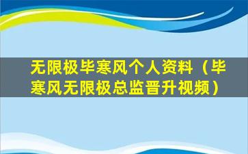 请注意,由于我无法访问最新的数据或个人信息,如果您需要毕寒风的详细个人资料,建议直接联系无限极公司或通过其官方渠道获取信息。同时,出于隐私保护的原因,个人资料通常不会被公开分享。