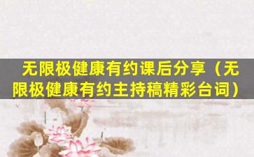 无限极健康有约主持稿精彩台词可能包括以下几个部分: