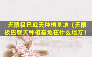 如果您需要了解更多关于无限极巴戟天种植基地的具体信息,建议直接联系无限极公司或访问其官方网站获取最新的资讯。由于我的知识截止日期是2023年4月,我无法提供此日期之后的最新信息。