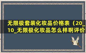 无限极(Infinitus)是一家中国的健康产品公司,隶属于李锦记健康产品集团。无限极提供多种健康和美容产品,包括化妆品。由于产品线可能会更新,价格也会随市场和地区而变化,因此我无法提供一个确切的无限极套装化妆品价格表。
