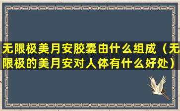 无限极是中国的一家直销公司,主要销售保健品、个人护理品和家居用品等。关于“美月安”这个产品,我无法提供具体的信息,因为这可能是一个特定于无限极的产品,而且我没有足够的信息来确认这个产品的具体成分和功效。