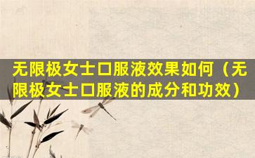 无限极女士口服液是无限极公司生产的一款针对女性健康的产品,它通常宣称能够调节女性内分泌,改善月经不调、痛经等问题,以及增强免疫力等。关于其效果,不同的人可能会有不同的体验。