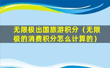 无限极是一家中国的直销公司,主要销售健康产品。关于“无限极出国旅游积分”,这可能是该公司为了激励销售和客户忠诚度而设立的一种奖励计划。通常,这类计划会要求参与者通过购买产品或达成一定的销售目标来积累积分,然后用这些积分兑换奖励,比如出国旅游。