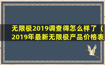 很抱歉,我无法提供2019年无限极产品的具体价格表,因为我的知识截止日期是2023年,而且我无法访问实时数据或历史价格信息。无限极是一家中国的直销公司,主要销售健康食品、个人护理产品和家居护理产品等。