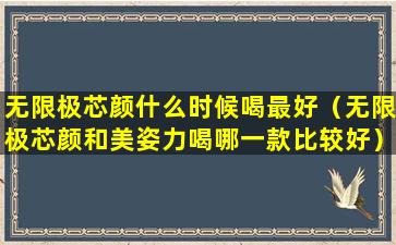 无限极芯颜是一款由无限极公司生产的保健饮品,它通常含有多种植物提取物和营养成分,旨在帮助改善肌肤状况和提升整体健康。关于“无限极芯颜什么时候喝最好”,这通常取决于产品的具体说明和个人的生活习惯。