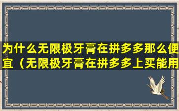 拼多多是一个以团购模式为主的电商平台,它通过集中采购和拼团的方式,使得商品价格相对较低。无限极牙膏在拼多多上价格便宜可能有以下几个原因: