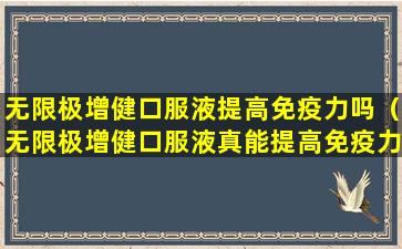 无限极增健口服液是无限极公司生产的一款保健品,其宣传声称能够帮助调节免疫系统,增强身体抵抗力。关于保健品是否能够真正提高免疫力,需要基于科学研究和临床试验的证据。