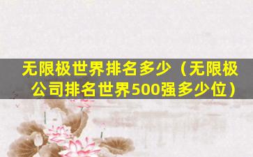 无限极(Infinitus)是一家总部位于中国的健康产品公司,隶属于香港李锦记集团。无限极主要从事中草药健康产品的研发、生产和销售。关于“无限极世界排名”,这个概念可能指的是公司在不同领域的排名,例如销售额、市场份额、品牌价值等。