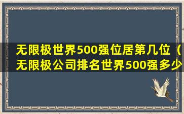 如果您想了解无限极的最新排名或业绩情况,建议查阅最新的企业财报或相关商业新闻报道。同时,也可以关注《财富》杂志的官方网站或其他权威财经媒体,以获取最新的世界500强企业名单。