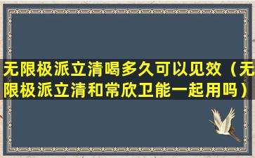 无限极派立清是无限极公司生产的一款产品,它通常被宣传为有助于调节身体机能、改善消化系统等。关于“喝多久可以见效”这个问题,并没有一个统一的标准答案,因为每个人的体质、生活习惯、饮食结构以及对产品的反应都是不同的。