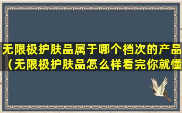 无限极(Infinitus)是中国的一个品牌,隶属于香港李锦记集团,主要涉及健康食品、个人护理品等领域。无限极护肤品属于中高端档次的产品品牌。它注重产品的天然成分和健康理念,价格通常高于一些大众品牌,但低于奢侈品牌。无限极的产品在中国市场有一定的知名度和消费群体,尤其是在关注健康和天然成分的消费者中。