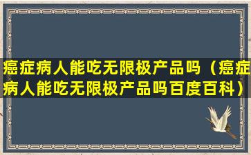 在百度百科或其他任何信息平台上,关于无限极产品的信息可能会有所不同,但重要的是要记住,任何健康相关的决策都应该基于可靠的医疗建议。癌症病人应该与他们的医疗团队讨论任何补充品的使用,包括无限极产品,以确保这些产品不会干扰他们的治疗或健康状况。