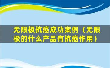 无限极是中国的一家健康产品公司,主要生产和销售中草药健康产品。关于“无限极抗癌成功案例”,首先需要明确的是,任何关于癌症治疗的成功案例都应该基于科学研究和临床证据。
