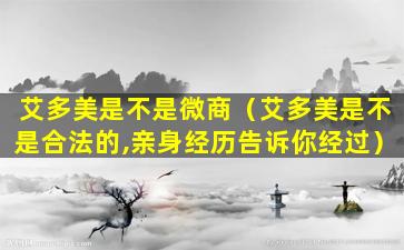 艾多美是不是微商(艾多美是不是合法的,亲身经历告诉你经过)