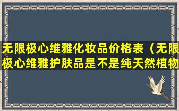 无限极(Infinitus)是一家中国的健康产品公司,其心维雅(Senses)系列护肤品主打的是天然植物成分。需要注意的是,即使是标榜为“纯天然植物”的护肤品,也可能包含一些非植物来源的成分,如防腐剂、稳定剂、乳化剂等,这些成分通常是必要的,以确保产品的稳定性和安全性。