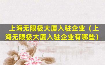 如果您需要了解上海无限极大厦当前的入驻企业名单,建议直接联系大厦管理处或访问其官方网站获取最新信息。