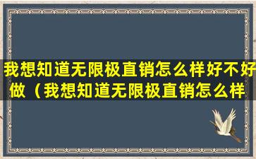关于“无限极直销怎么样,好不好做”,这个问题涉及到个人经验、市场环境、个人能力等多方面因素,因此没有一个统一的答案。以下是一些考虑因素: