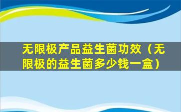 无限极(Infinitus)是一家中国的健康产品公司,其产品线包括了多种健康食品和营养补充品。益生菌是无限极产品中的一种,它含有多种有益的活菌,旨在帮助维持肠道健康。