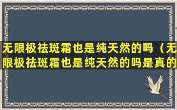 无限极(Infinitus)是中国的一个健康产品品牌,隶属于李锦记健康产品集团。无限极的产品线包括了多种健康食品、个人护理品等。关于无限极的祛斑霜是否纯天然,这需要查看具体产品的成分列表。通常,产品包装上会列出所有成分,消费者可以根据这些信息来判断产品是否含有天然成分。
