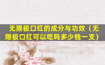 无限极(Infinitus)是一家中国的健康产品公司,以生产中草药健康产品而闻名。关于无限极口红的信息并不广泛,因此无法提供具体的成分与功效分析。