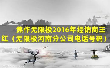 关于“焦作无限极2016年经销商王红”,这可能是指在2016年,一位名叫王红的个人或企业在河南省焦作市作为无限极的经销商。经销商通常负责在特定区域内销售公司的产品,并可能参与市场推广和客户服务等活动。