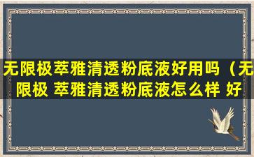 关于“无限极萃雅清透粉底液好用吗”的问题,这主要取决于个人的肤质、使用习惯以及对产品的期望。以下是一些可能的评价标准:
