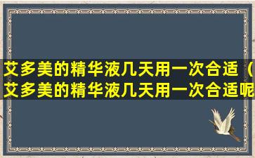 艾多美的精华液使用频率取决于产品的具体说明和您的皮肤状况。一般来说,精华液是护肤品中的高浓度活性成分产品,通常建议每天使用,早晚各一次。但是,有些精华液可能因为成分的特殊性或者皮肤的敏感性,建议隔天使用或者按照产品说明书上的推荐频率使用。