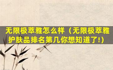 无限极(Infinitus)是一家中国的健康产品公司,其产品线包括了多种保健品和护肤品。萃雅是无限极旗下的一个护肤品牌,主打天然成分和中医理念。关于萃雅补水产品的效果,这通常取决于个人的肤质、使用习惯以及产品的具体成分。