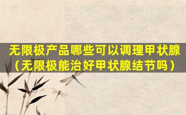 无限极的产品线中,可能包含一些有助于支持甲状腺健康的产品,例如含有碘的海洋生物提取物或者含有维生素和矿物质的复合营养补充品。具体哪些产品适合调理甲状腺,需要根据个人的健康状况和医生的建议来确定。