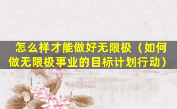 无限极是一家中国的直销公司,主要销售健康产品。要做好无限极,可以考虑以下几个方面: