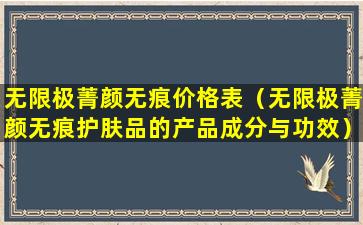 为了了解“无限极菁颜无痕护肤品”的具体成分和功效,建议直接查阅该产品的官方说明书或官方网站上的产品介绍。官方渠道提供的信息将是最准确和权威的。同时,如果您对该产品的成分有过敏史或疑虑,建议在使用前咨询专业的皮肤科医生或美容顾问。
