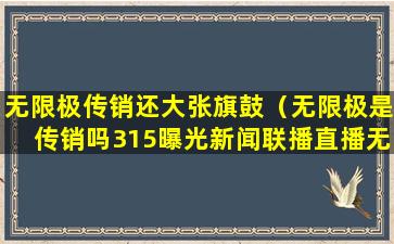 至于“315曝光新闻联播直播无限极”,这可能是指在中国的消费者权益日(3月15日)期间,新闻媒体对某些企业的负面报道。我无法提供具体的“315曝光新闻联播直播无限极”的信息,因为我的知识截止日期是2023年4月,且我无法访问实时的新闻或数据库。