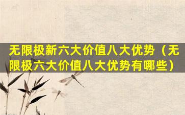无限极(Infinitus)是一家中国的直销公司,隶属于香港李锦记集团,主要从事健康产品的研发、生产和销售。关于“无限极新六大价值八大优势”,这可能是该公司在某个时期推出的营销策略或者产品推广的口号。由于信息可能随时间而变化,我无法提供最新的具体内容。