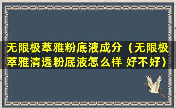 为了获取无限极萃雅粉底液的准确成分信息,建议直接查看产品包装上的成分列表,或者访问无限极的官方网站和官方授权的销售渠道获取最新的产品信息。在使用任何化妆品之前,了解其成分对于确保产品适合自己的肤质和避免可能的过敏反应是非常重要的。如果有特殊的皮肤状况或对某些成分过敏,建议在使用前咨询皮肤科医生的意见。