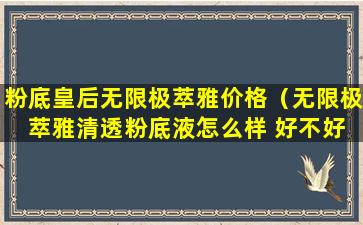 关于“粉底皇后无限极萃雅价格”,由于产品价格可能会随时间、促销活动、地区差异等因素而有所不同,因此无法提供一个确切的价格。通常,无限极的产品价格在中等偏上,具体价格需要根据购买时的实际情况来确定。