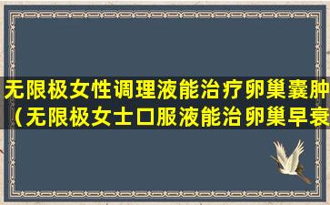无限极是一家中国的直销公司,主要销售健康产品。根据中国法律法规,任何健康产品都不能宣称具有治疗疾病的功能,除非它是一种经过批准的药品。因此,如果“无限极女性调理液”是一种健康产品而非药品,它不应该宣称能够治疗卵巢囊肿或其他任何疾病。