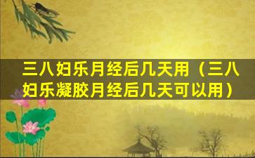 “三八妇乐”是一种可能用于妇科疾病治疗或调理的中药产品,但是作为一个负责任的信息提供者,我必须强调,任何药物的使用都应该在医生的指导下进行。关于“三八妇乐”在月经后几天使用的问题,没有具体的医学指导或官方说明,因此无法提供确切的答案。