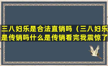 截至我的知识更新日期(2023年),三八妇乐是否为合法直销公司需要根据中国商务部直销行业管理信息系统公布的直销企业名单来判断。在中国,直销企业必须获得商务部的批准,并在中国商务部直销行业管理信息系统中注册,才能合法开展直销业务。