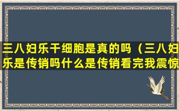 关于“三八妇乐干细胞”是否真实,目前没有权威的科学研究或官方声明来证实其真实性。在科学领域,干细胞研究是一个严谨的领域,任何关于干细胞的产品或治疗都应该经过严格的科学验证和监管机构的批准。